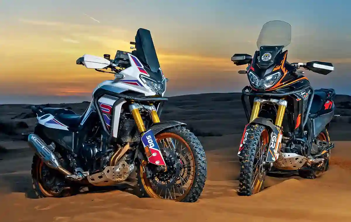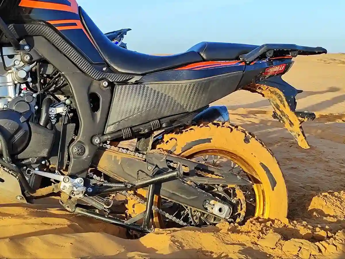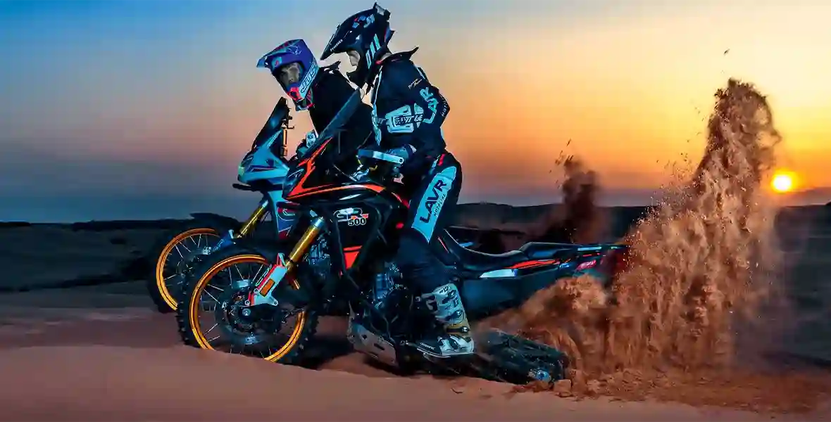Пятисоткубовый GR 500 21/18, на которых заявилась в гонку команда «Роллинг Мото», — один из флагманов туристической линейки GR, сделан по классической схеме и внешне похож на знаменитую хондовскую «Африку». В стальной раме установлен двухцилиндровый 4‑тактный двигатель Loncin с жидкостным охлаждением и инжектором от Bosch. Надежный, неприхотливый и хорошо известный движок «срисованный» с Honda CB 500X, работает в паре с 6‑ступенчатой МКП. Cпереди стоит телескопическая вилка-перевертыш SZC Pro с диаметром пера 41 мм и ходом 200 мм. Вилка оснащена регулировками сжатия (40 щелчков) и отбоя (32 щелчка). Сзади установлен моноамортизатор SZC с ходом 150 мм, регулировкой сжатия (32 щелчка) и отбоя (28 щелчков). Прочные спицованные колеса диаметром 21 дюйм спереди и 18 дюймов сзади специально для гонки обули в покрышки Borilli 7 Days Rally. Тормоза с отключаемой ABS, что важно на бездорожье, cпереди два диска диаметром 298 мм с 4‑поршневыми суппортами, сзади один диск диаметром 240 мм и 2‑поршневой суппорт — этого вполне достаточно, чтобы остановить байк снаряженным весом 190 кг в любой ситуации.